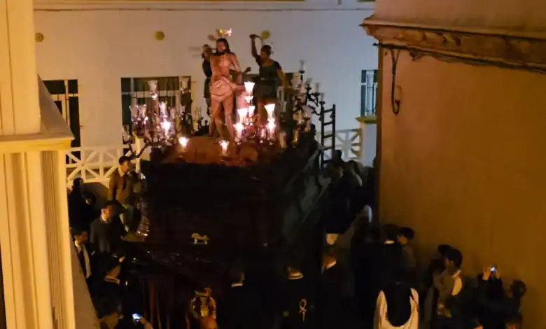 El paso de la Columna protagoniza un emocionante giro hacia San Francisco de Asís en plena Semana Santa, dejando una escena inolvidable en San Fernando.